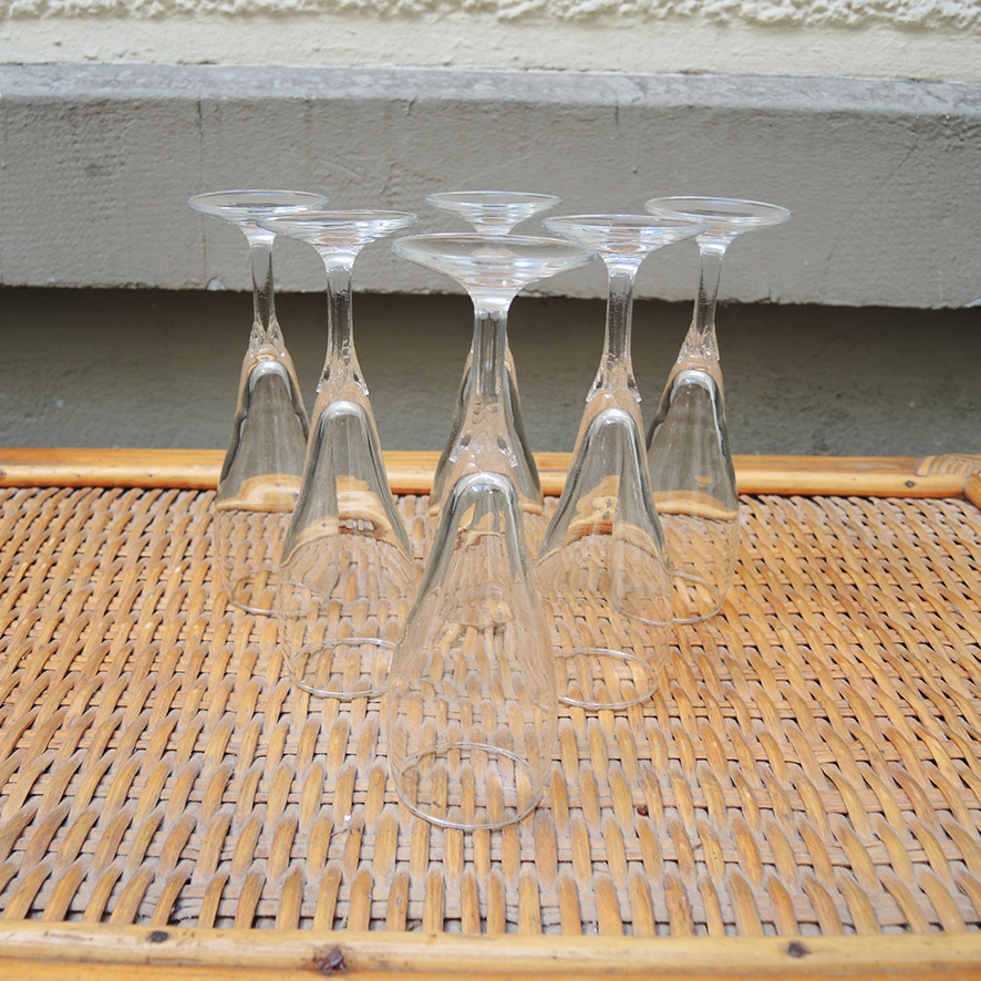 Apportez une touche d’élégance intemporelle à vos moments de fête avec ce lot de six flûtes à champagne en verre transparent vintage.