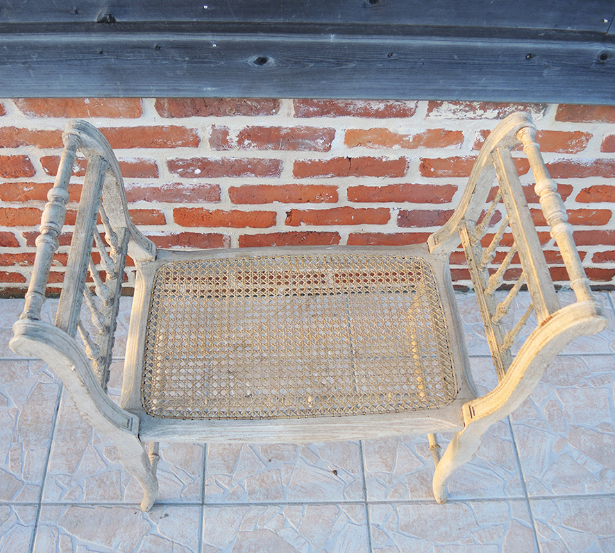 La structure en bois joliment patiné est complétée par une assise cannée qui apporte légèreté et respiration à l’ensemble,