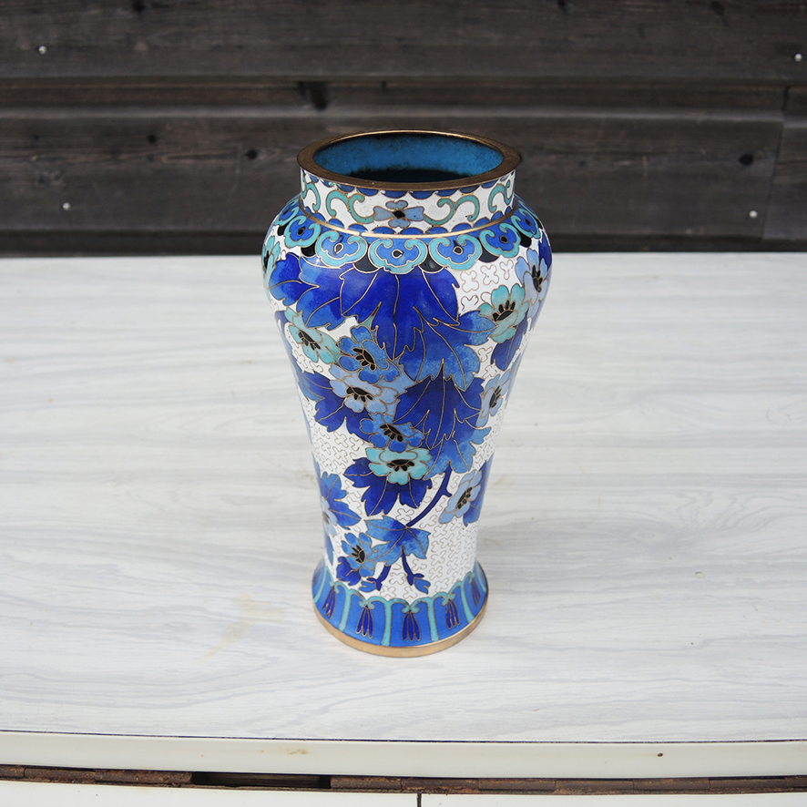 Apportez une touche d’élégance à votre intérieur avec ce vase en laiton émaillé vintage.