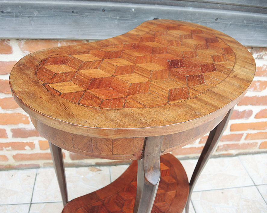 Ancienne Table d’Appoint Rognon en Marqueterie de Cubes