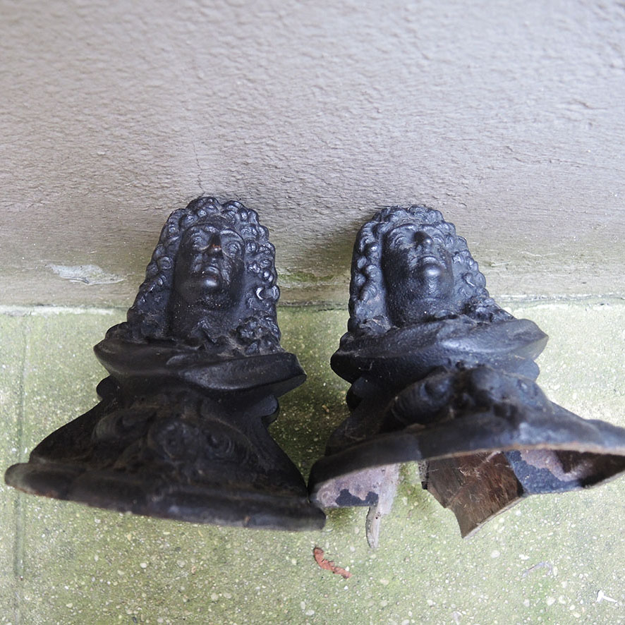 Transformez votre foyer avec ces chenets de cheminée vintage en fonte, décorés d’un buste de Louis XIV, le Roi Soleil.