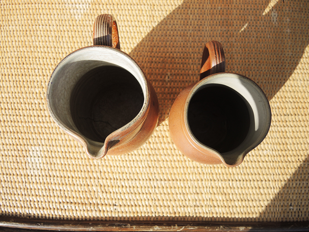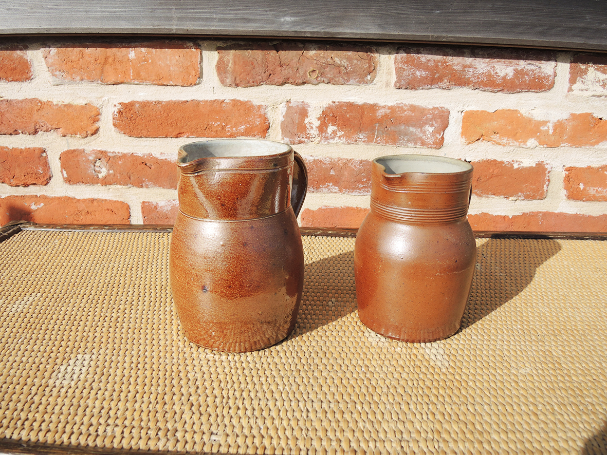 Charmante paire de pichets en grès vernissé vintage, au style authentique et intemporel.