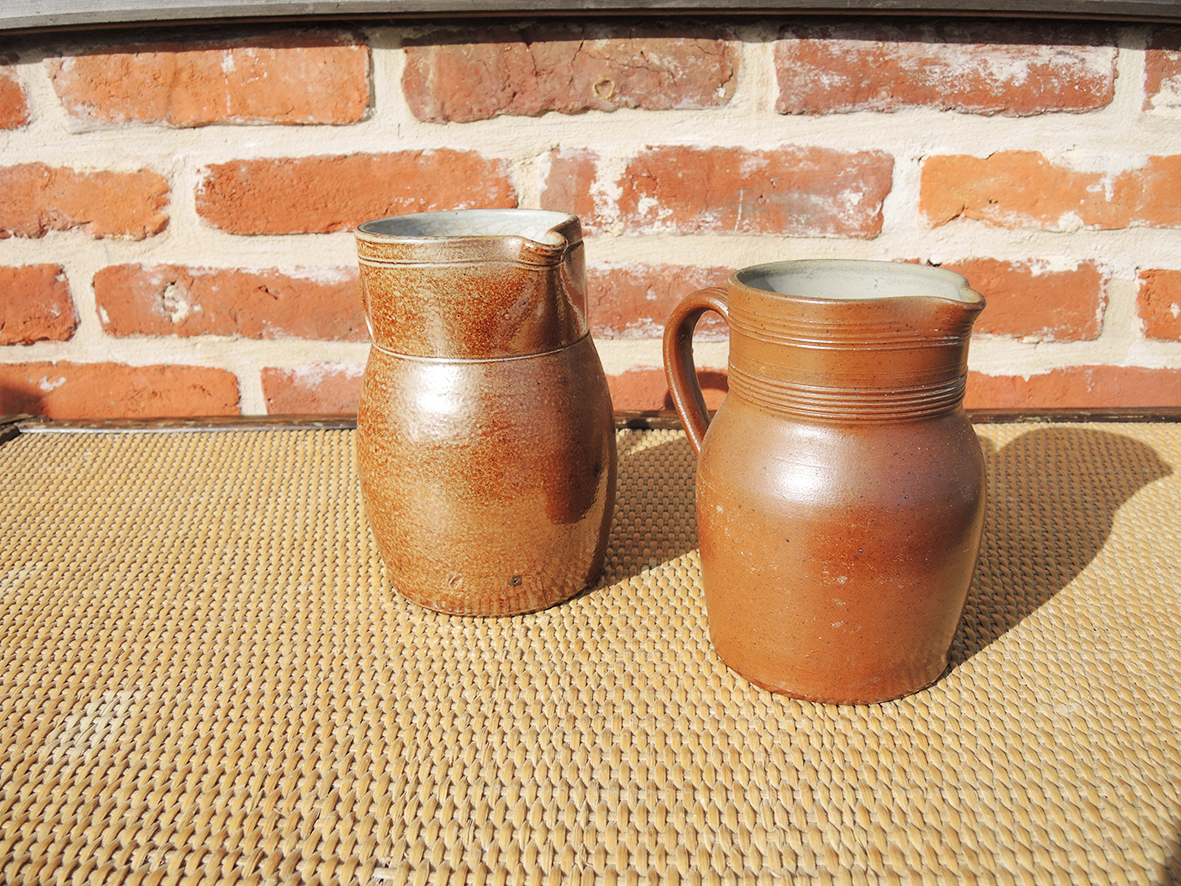 2 Anciens Pichets en Grès H 15 & 16,5 cm
