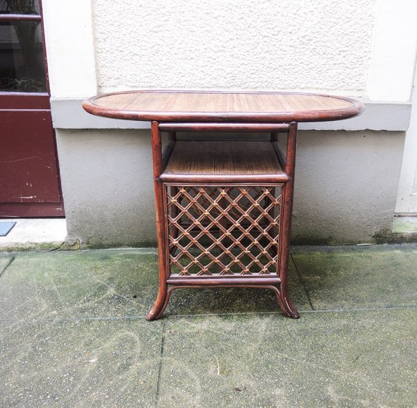 Doté de deux plateaux en fibre naturel et une structure en rotin, cette table haute allie légèreté et robustesse.