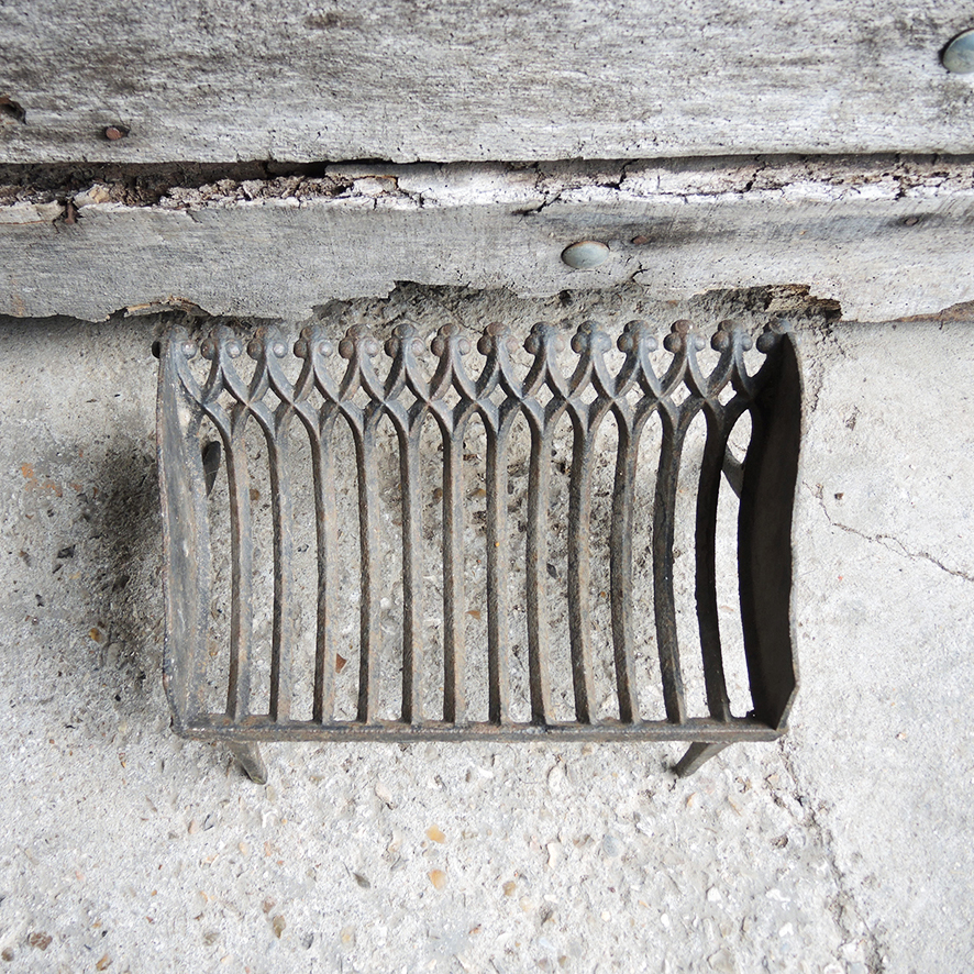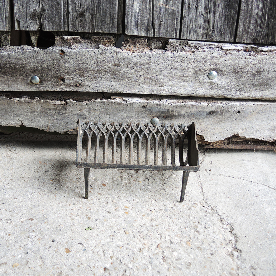 Berceau-grille vintage en fonte de fer à 12 barreaux, à la fois robuste et élégant, prêt à embellir votre cheminée avec son allure unique.