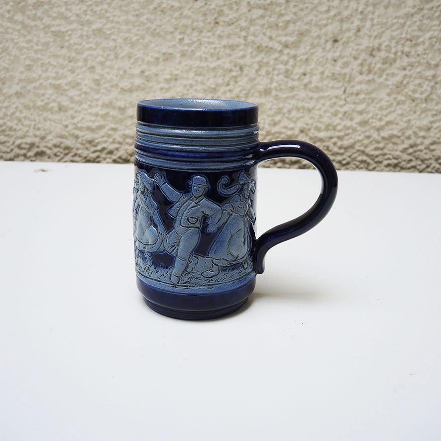Plongez dans l’authenticité alsacienne avec cette belle chope à bière vintage en grès de Betschdorf, un véritable symbole du savoir-faire artisanal.