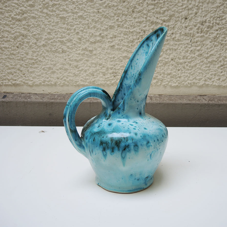 Ancienne Cruche ‘Long Bec’ en Céramique Turquoise